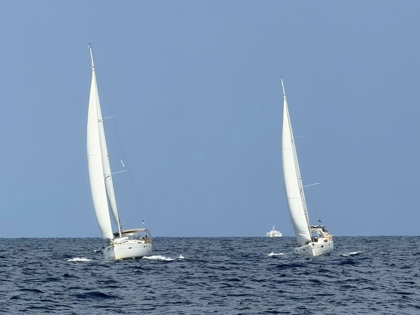 Der Donnerstag wurde wetterbedingt zum Hafentag erklärt. Eine Windwarnung mit angesagten 6 bis 8 Beaufort machte das Abwettern nötig. Am Freitag hieß es dann, trotz kräftiger Böen die Rückreise nach Salerno anzutreten, da die Schiffe pünktlich zurückgegeben werden mussten. Einige Crews entschieden sich für die Fahrt unter Motor, andere segelten mit gerefften Segeln. Bei der Einfahrt in den Hafen wollte Fahrtenleiter Winni Haves das Großsegel noch ordentlich aufrollen – eine plötzlich auftretende Böe führte jedoch zum Abriss des Schothorns und damit zu einem Segelschaden.